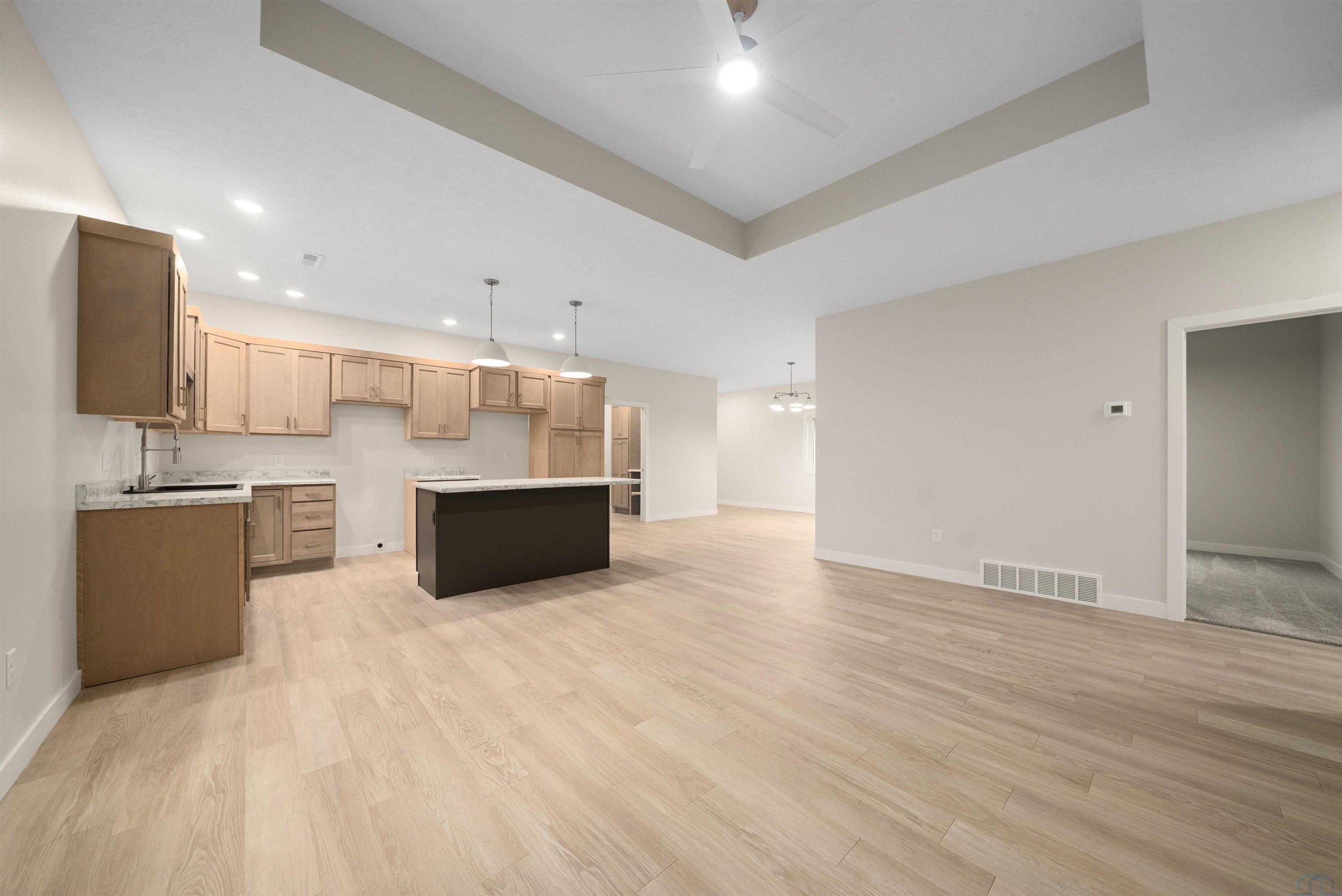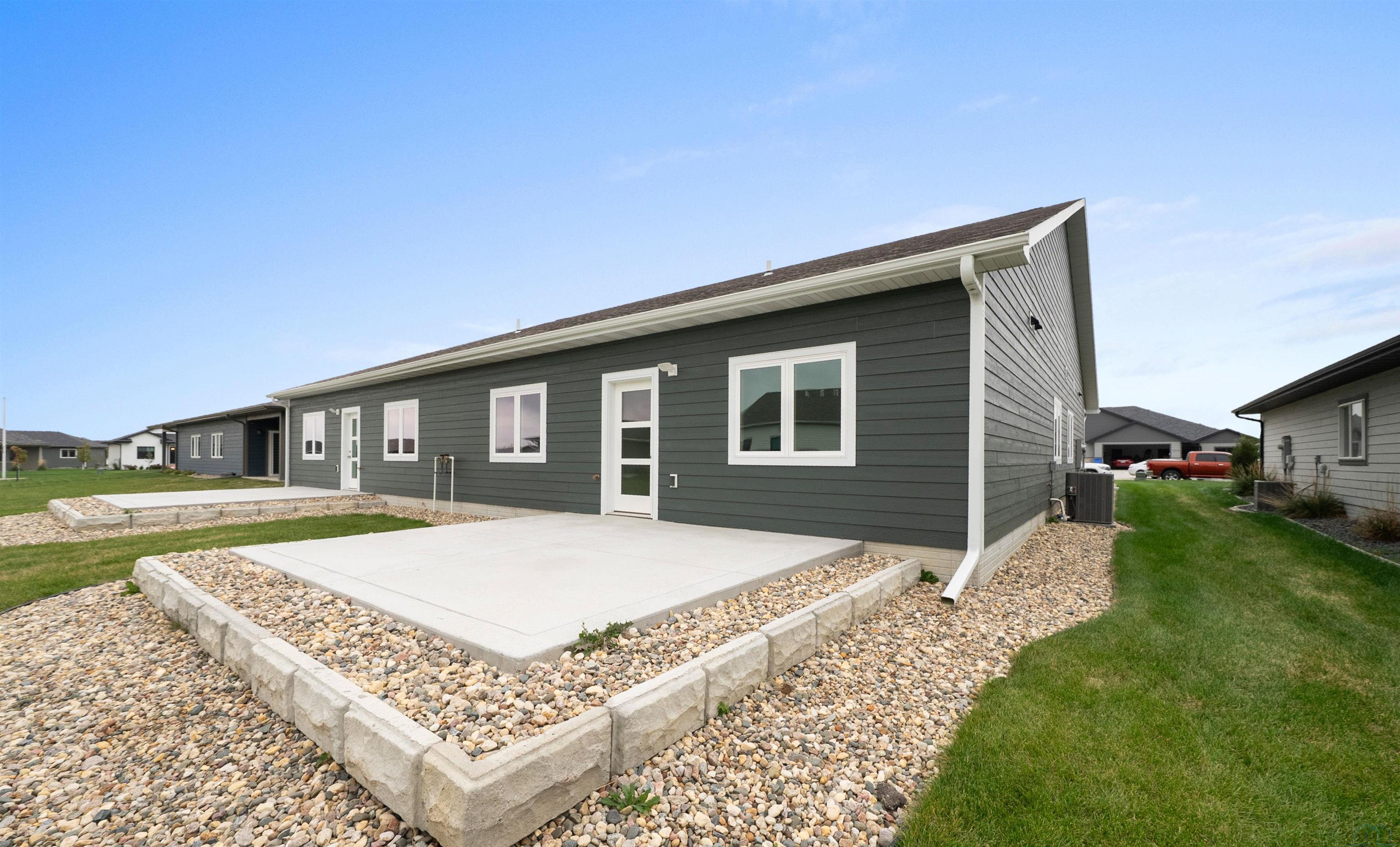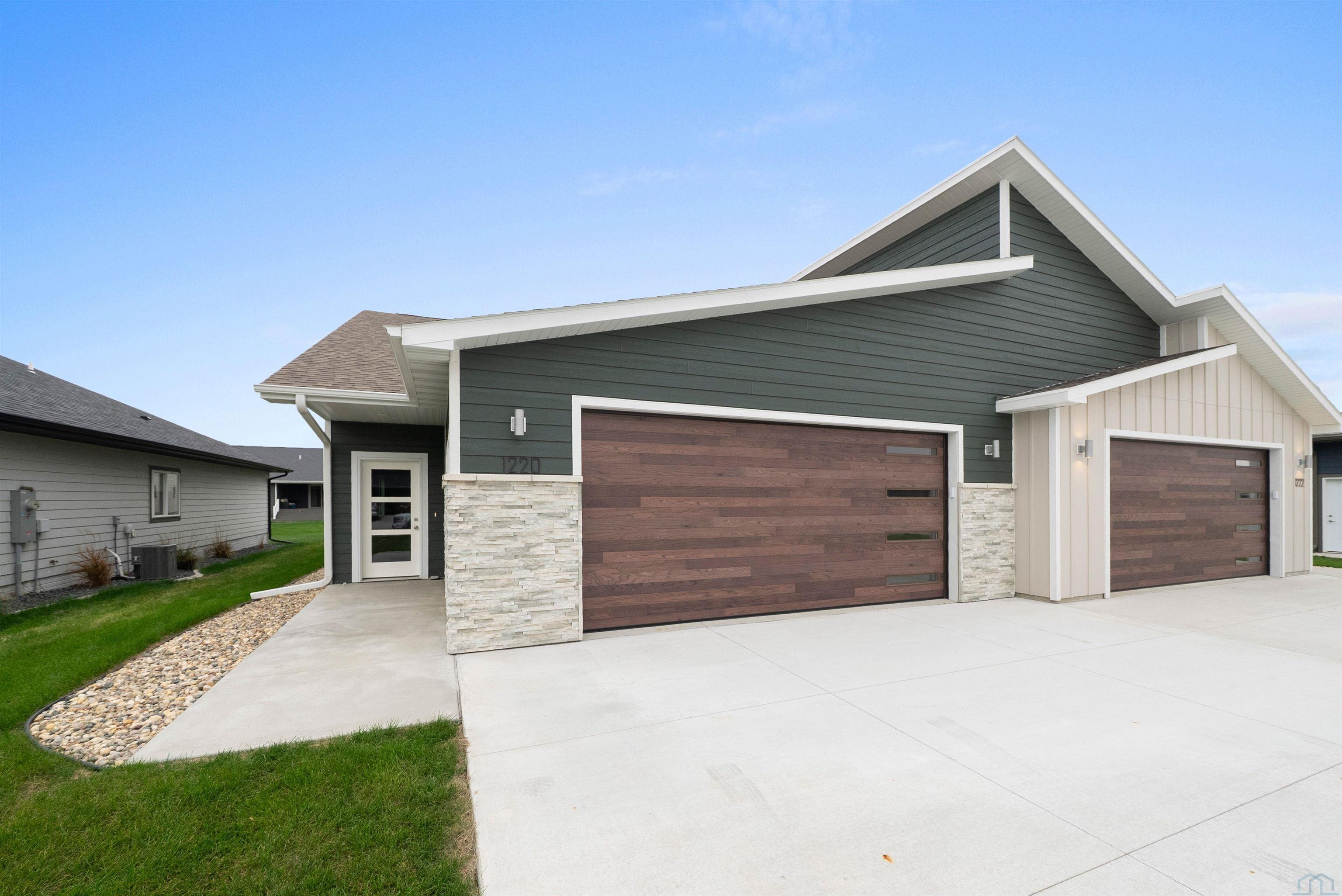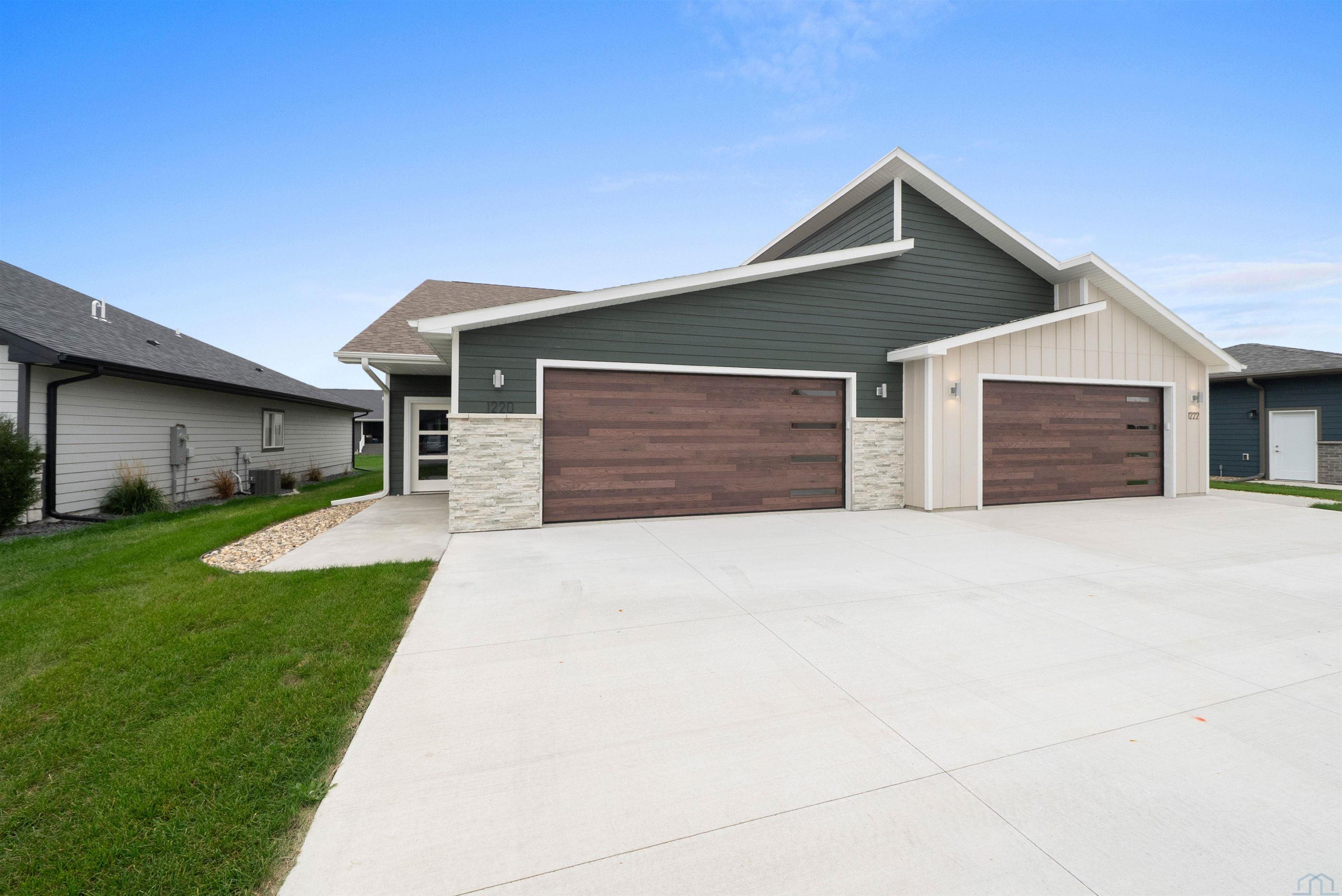 Step into style and comfort with this stunning, brand-new construction twin home, featuring a convenient slab-on-grade design. This home is thoughtfully designed for modern living with an open-concept layout that seamlessly connects the kitchen, dining, and living areas. The kitchen is a chef’s delight, offering abundant cabinetry, a spacious island, and a large pantry cabinet with pull-out drawers—perfect for both everyday meals and entertaining. Throughout the home, you’ll appreciate stylish touches like three-panel doors and a 10-foot tray ceiling in the living room. The main floor laundry room is conveniently located with a pocket door and provides extra storage with additional cabinets and counter space. Your primary suite is a true retreat, boasting a luxurious walk-in onyx shower, double vanities with ample counter space, and a pocket door leading to a spacious walk-in closet. Across the hall, you’ll find two additional bedrooms, both with double closets, and a full bath complete with a linen cabinet. The finished two-stall garage features a modern garage door and a service door for easy access. Outside, enjoy a tasteful patio and a fully landscaped yard with sod and a sprinkler system. This home also includes high-efficiency windows and is prepped for in-floor heating. Located in the beautiful Bliss Pointe development, this quality-built home by AMS Building Systems is a must-see! Interior photos and video are of 1220 side only. Both 1220 and 1222 Zitkala-sa currently available.