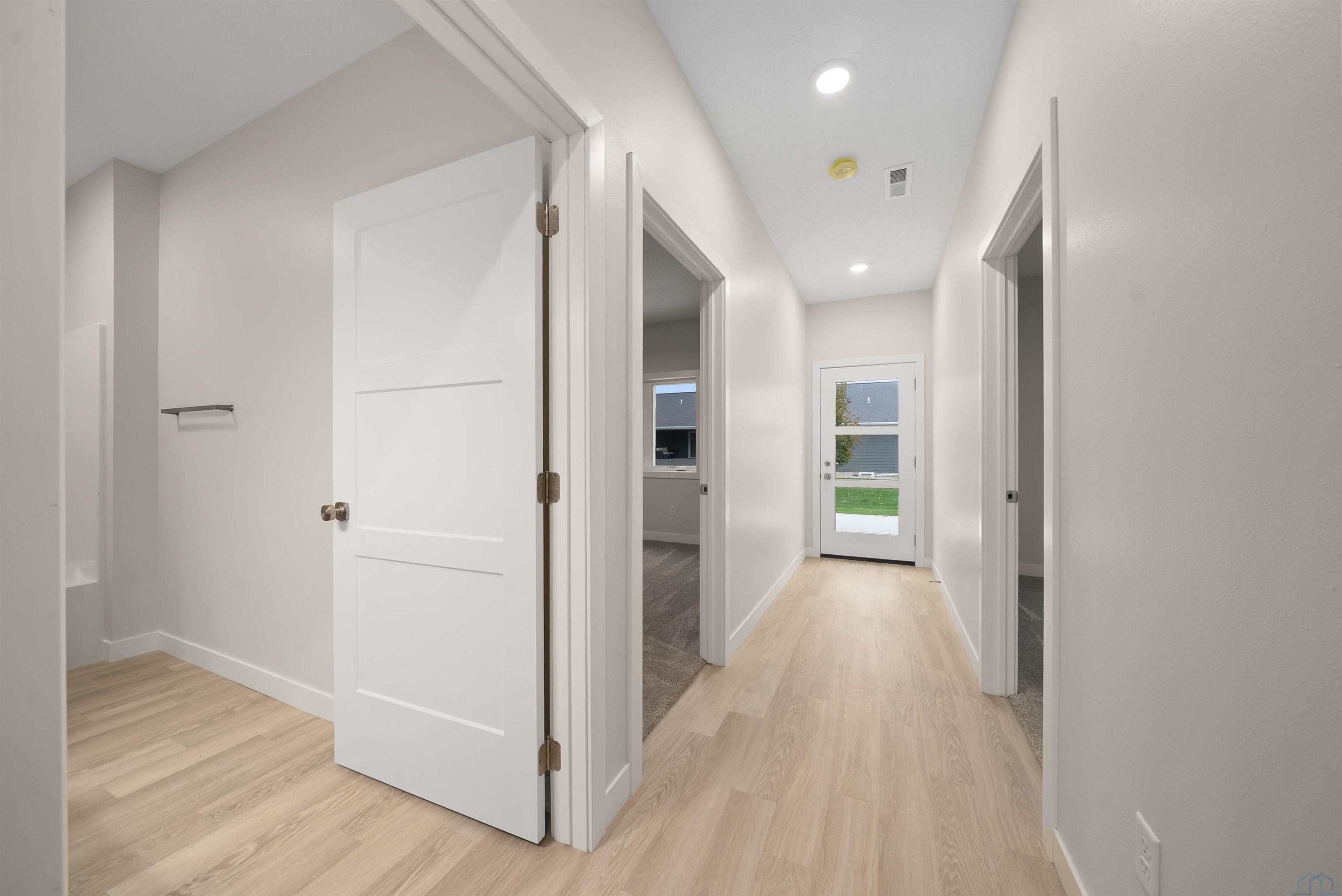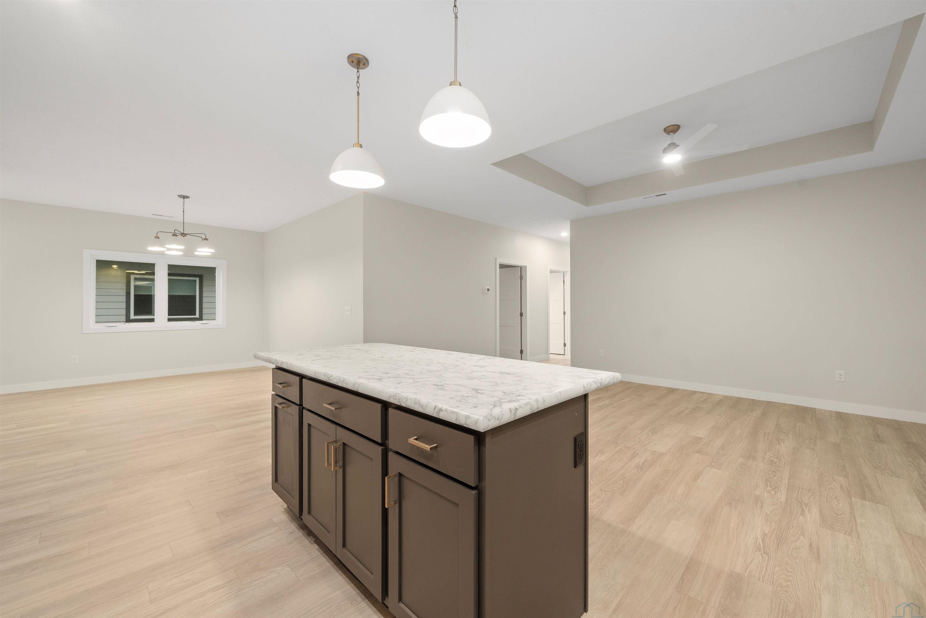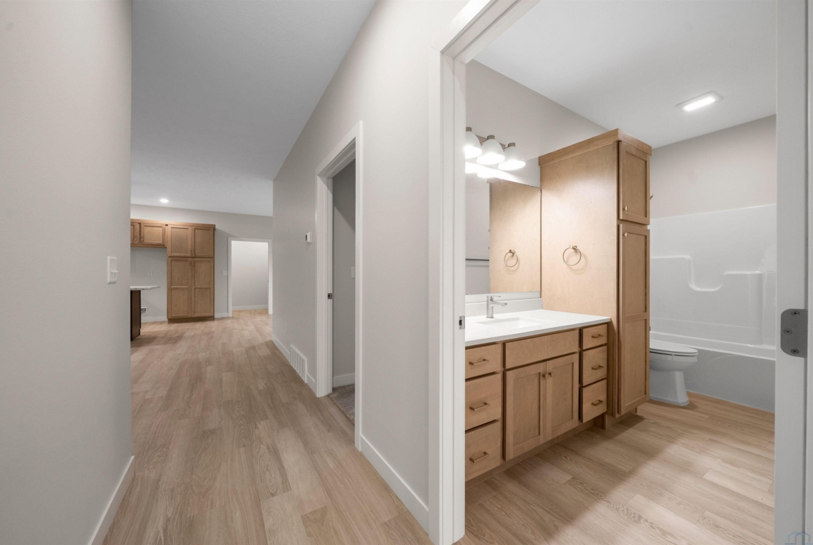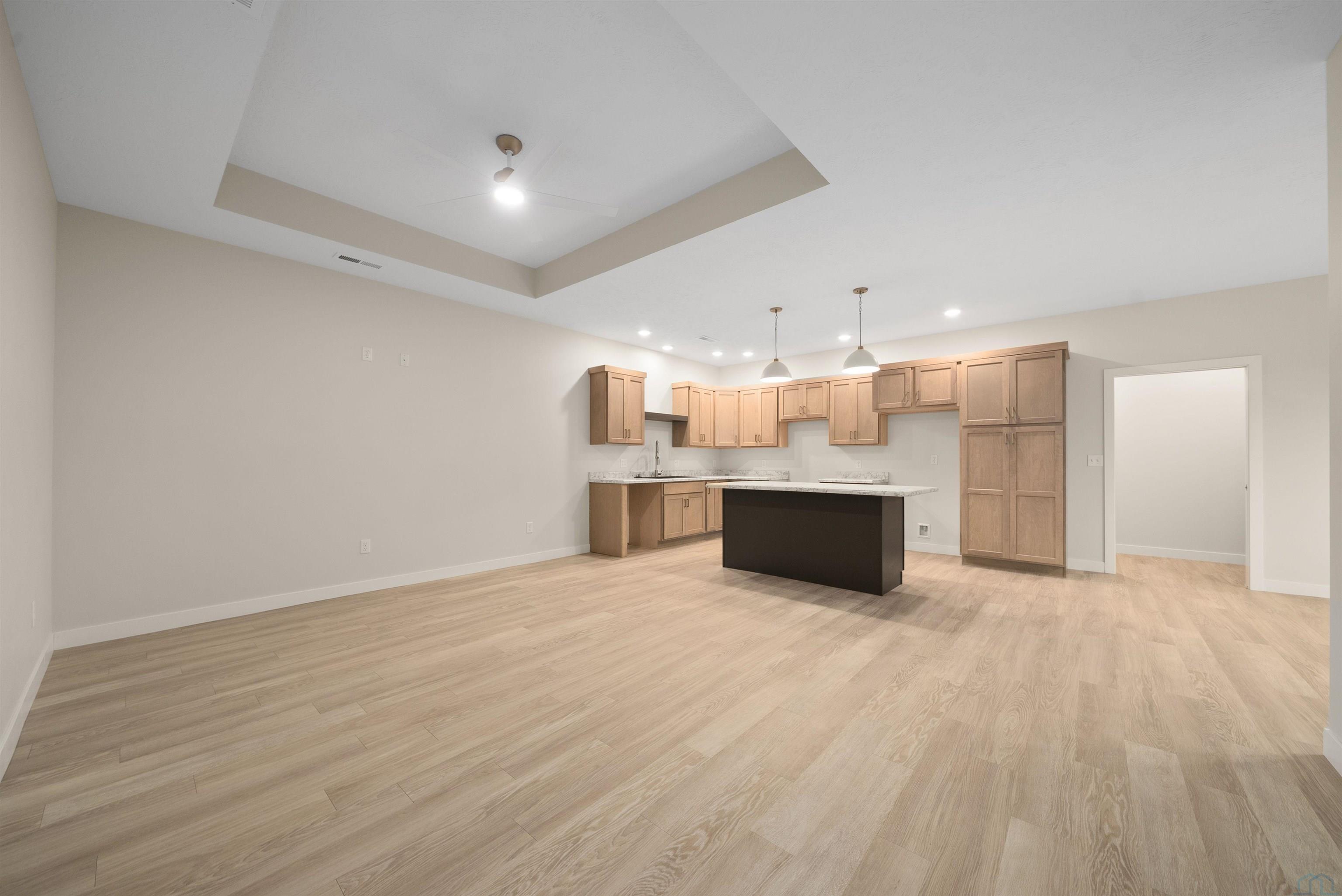 Step into style and comfort with this stunning, brand-new construction twin home, featuring a convenient slab-on-grade design. This home is thoughtfully designed for modern living with an open-concept layout that seamlessly connects the kitchen, dining, and living areas. The kitchen is a chef’s delight, offering abundant cabinetry, a spacious island, and a large pantry cabinet with pull-out drawers—perfect for both everyday meals and entertaining. Throughout the home, you’ll appreciate stylish touches like three-panel doors and a 10-foot tray ceiling in the living room. The main floor laundry room is conveniently located with a pocket door and provides extra storage with additional cabinets and counter space. Your primary suite is a true retreat, boasting a luxurious walk-in onyx shower, double vanities with ample counter space, and a pocket door leading to a spacious walk-in closet. Across the hall, you’ll find two additional bedrooms, both with double closets, and a full bath complete with a linen cabinet. The finished two-stall garage features a modern garage door and a service door for easy access. Outside, enjoy a tasteful patio and a fully landscaped yard with sod and a sprinkler system. This home also includes high-efficiency windows and is prepped for in-floor heating. Located in the beautiful Bliss Pointe development, this quality-built home by AMS Building Systems is a must-see! Interior photos and video are of 1220 side only. Both 1220 and 1222 Zitkala-sa currently available.