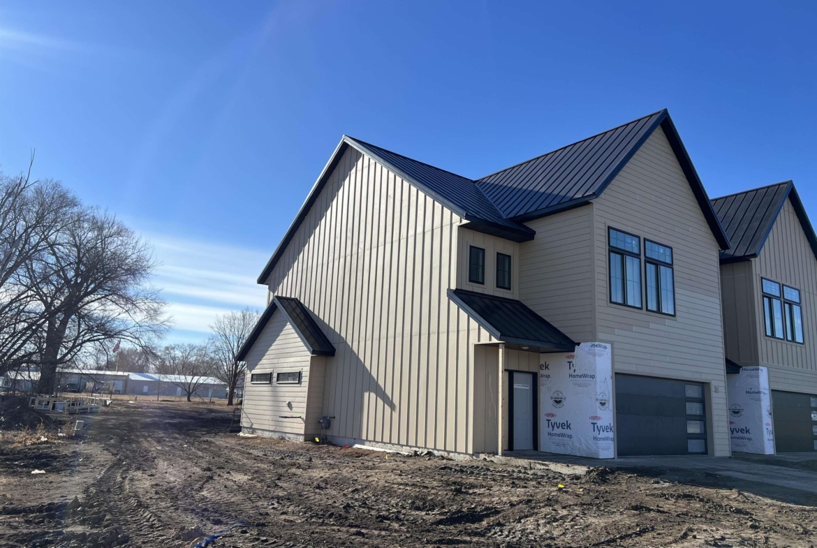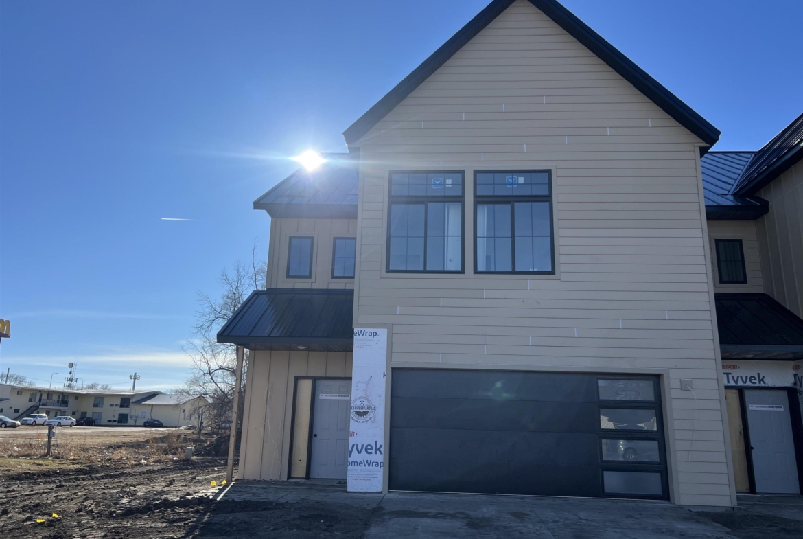 Welcome to North42! This beautiful townhome is part of Phase 1 of an exciting new development centrally located in Vermillion just 2 blocks from USD campus and the Dakota Dome. Thoughtfully designed with a modern farmhouse aesthetic, this home offers a truly unique layout you won’t find anywhere else. Step inside to a stunning two-story foyer where soaring ceilings extend to the second floor, creating a grand and open first impression with an upper-level overlook. The main level features a spacious open-concept floor plan, including a stylish kitchen with island, walk-in pantry, and designated dining area with a sliding glass door leading to the backyard patio. A roomy living area, convenient mudroom, and half bath complete the main floor. This end unit also offers extra yard space, additional privacy, and extra windows in the living room, flooding the space with natural light. Upstairs, the primary suite offers a private retreat with a double-sink vanity, tile-surround shower, and a spacious walk-in closet. Two additional generously sized bedrooms and a full bath complete the second level. Throughout the home, you’ll find thoughtfully selected finishes including tile kitchen backsplash, tile tub and shower surrounds, beautiful modern lighting, and luxury vinyl plank flooring throughout the main level, stairs, and landing. Each unit will feature a unique mix of finishes for added character. An attached two-stall garage completes this exceptional property. Estimated completion is spring 2026, but showings begin immediately—don’t miss your opportunity to be part of this exciting new development. Covenants and HOA details coming soon. For more information, please visit North42onDuke.com.