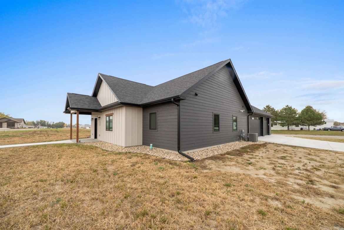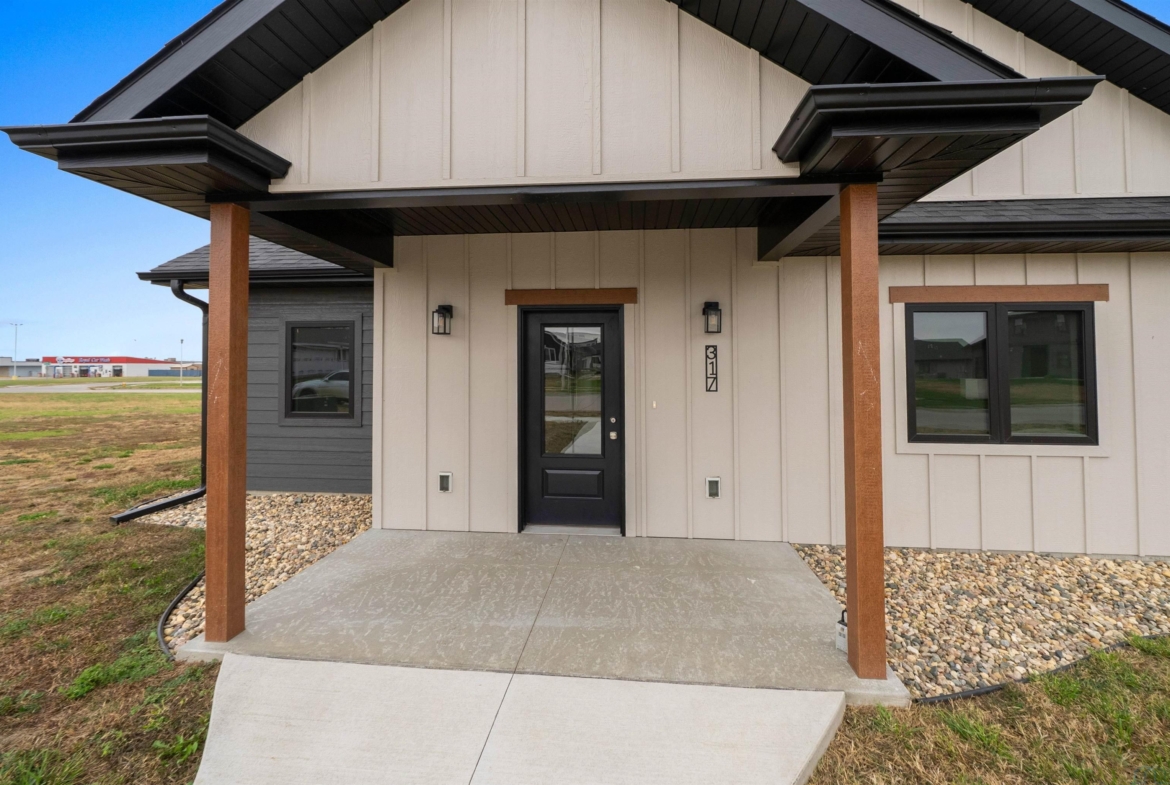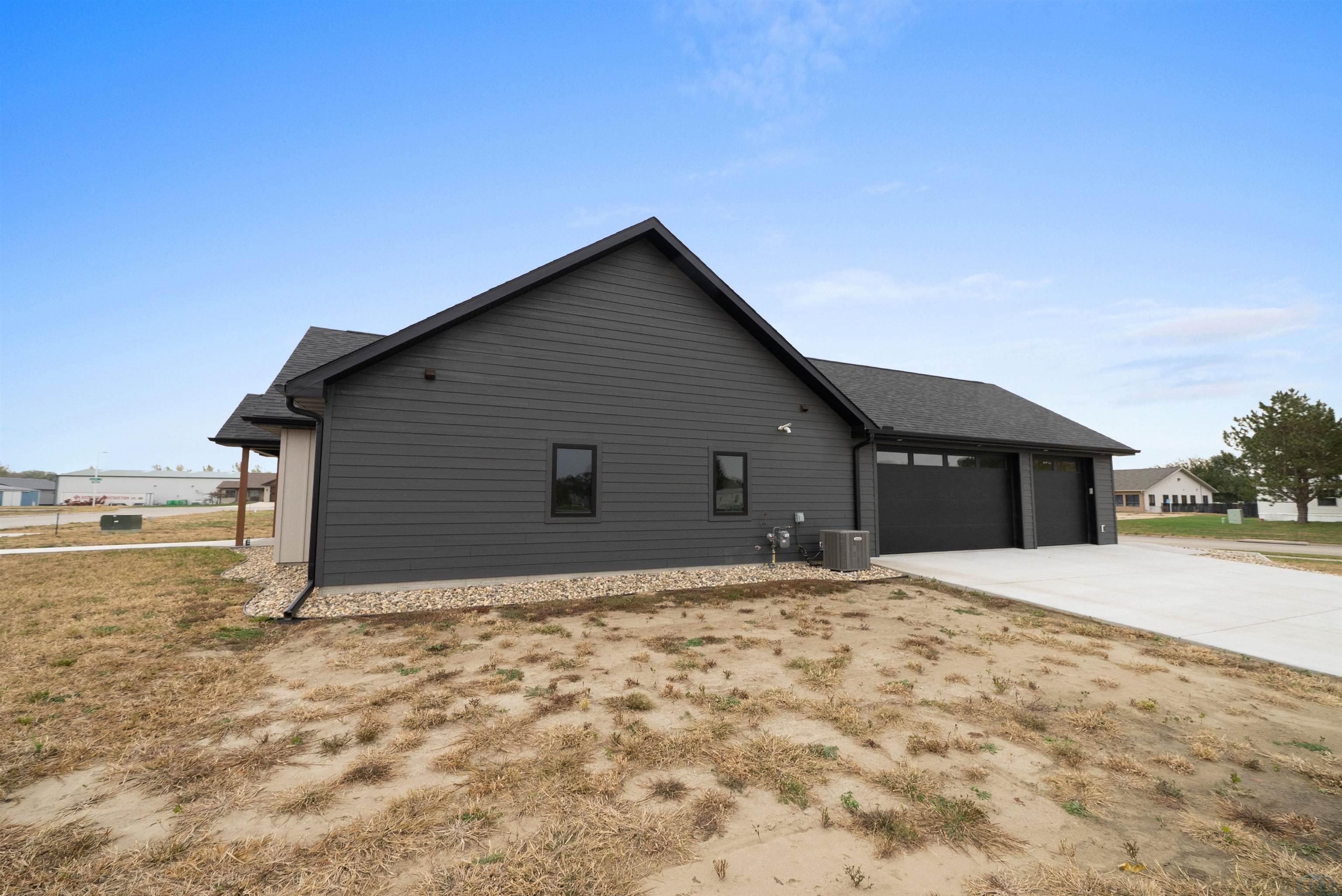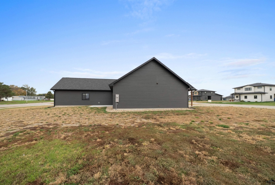 Here’s a stunning new construction ranch home by AMS Building Systems that you won’t want to miss! This beautifully designed home features a 3-bedroom, 2-bathroom open floor plan. The kitchen is a highlight with stained cabinets, a spacious island, a tiled backsplash, and a walk-in pantry. The living room boasts abundant natural light, a 10-foot tray ceiling, and a floor-to-ceiling electric fireplace, creating an expansive feel. The primary suite is a true retreat, offering a tray ceiling, a walk-in shower, two separate vanities, an extra counter area, a linen cabinet, and a pocket door leading to a large walk-in closet. On the other side of the living room, you’ll find two additional bedrooms, both with double closets and organizers, and a conveniently located full bath with a linen closet. The main floor laundry is perfectly situated between the kitchen and garage, providing additional storage with cabinets and a closet. The fully finished, three-stall garage includes a floor drain and a service door to the yard. For outdoor enjoyment, a patio is located just off the kitchen. This slab home offers easy, step-free access throughout. It’s located in the beautiful Bliss Pointe development, and the builder is offering a $5,000 appliance credit to the buyer at closing. No HOA fees.