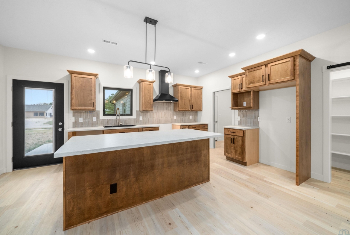 | Kitchen | Main | 18 X 13, LVP, tile backsplash, | large island, patio access, large pantry, barn door |